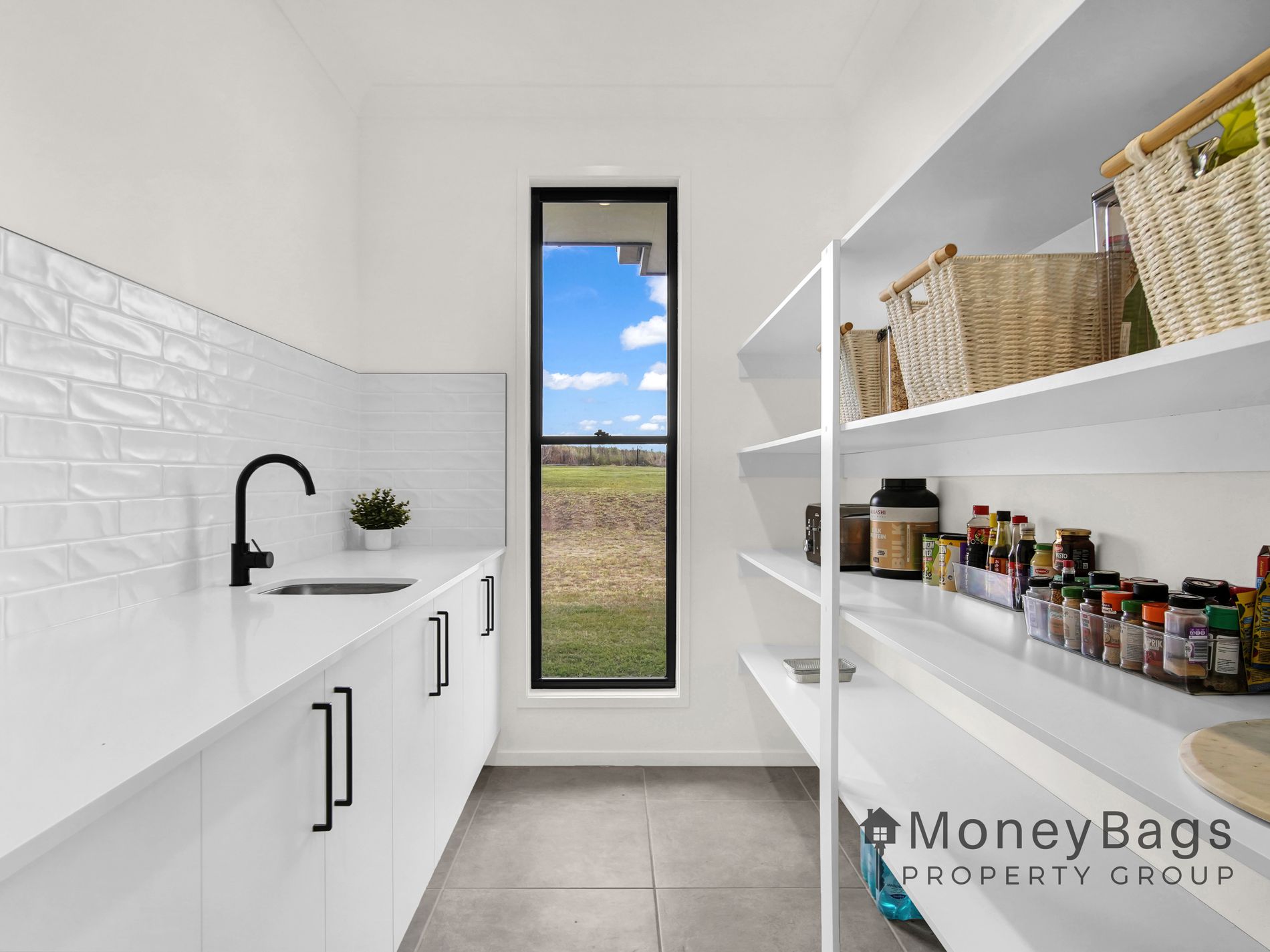The heart of the home is the exceptional kitchen — oversized and styled to perfection. Enjoy quality appliances including a 900mm gas freestanding cooktop with electric oven, black tapware, an expansive waterfall island bench, and a supersized butler’s pantry with additional sink and full shelving — ensuring all your culinary and storage needs are effortlessly met.
