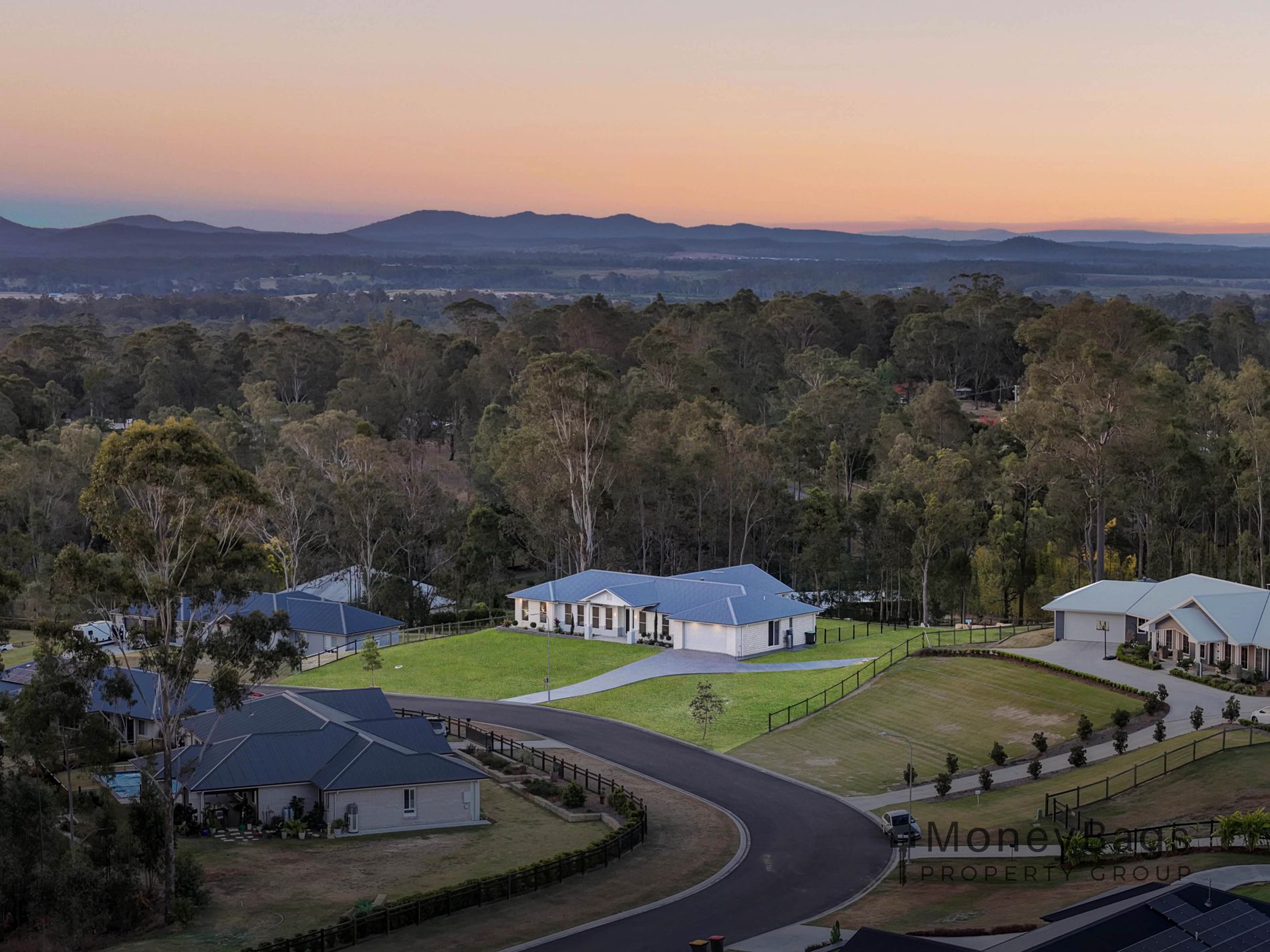 Perched in an elevated position and embracing breathtaking mountain views, this Hamptons-inspired residence offers the perfect blend of elegance, scale, and modern comfort. Nestled on a generous 4,418m² block, this immaculate property is designed to impress from the very first glance, from its manicured gardens and expansive concrete driveway to its striking architectural façade.