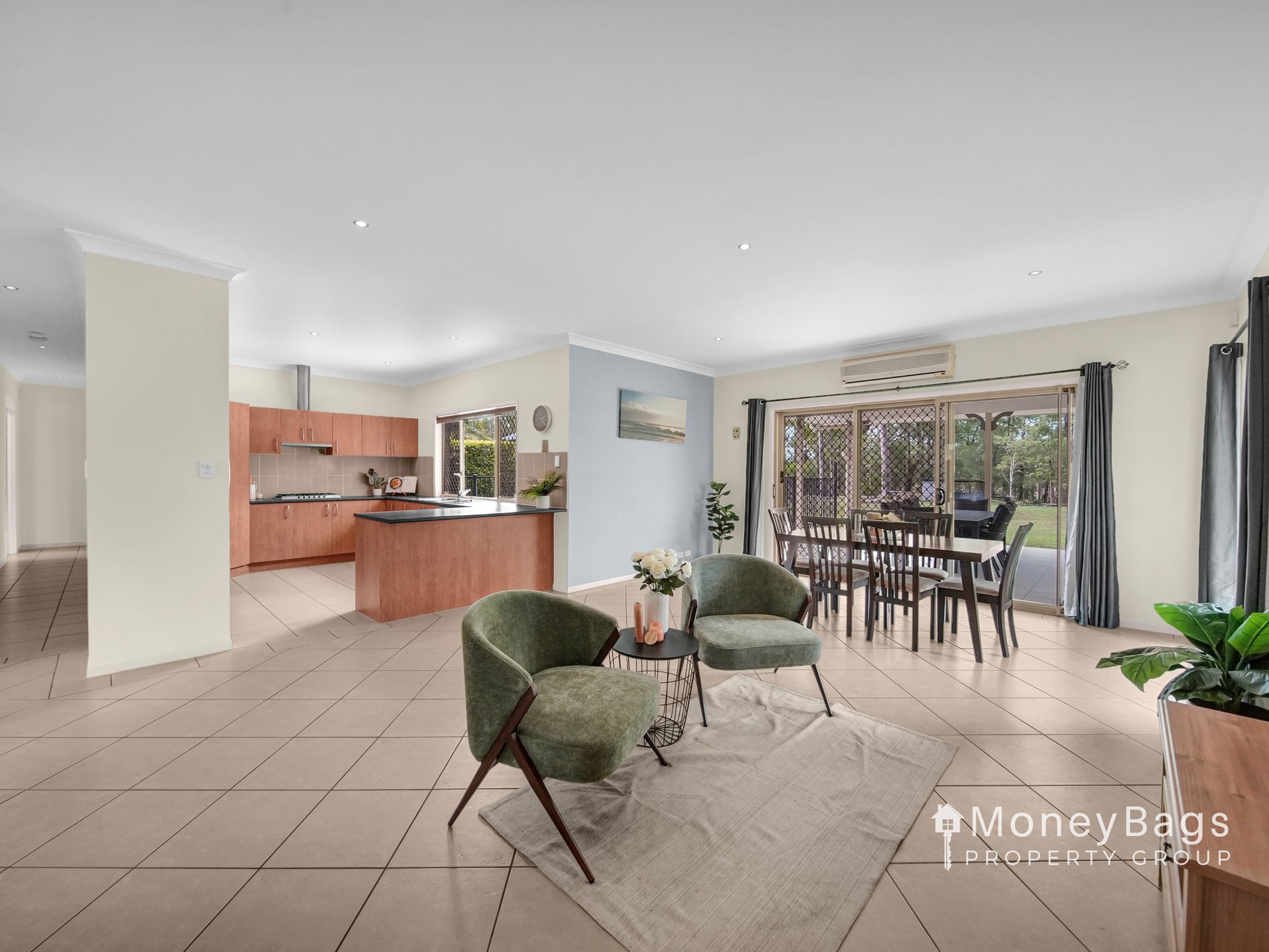 * Open plan kitchen, dining and family room