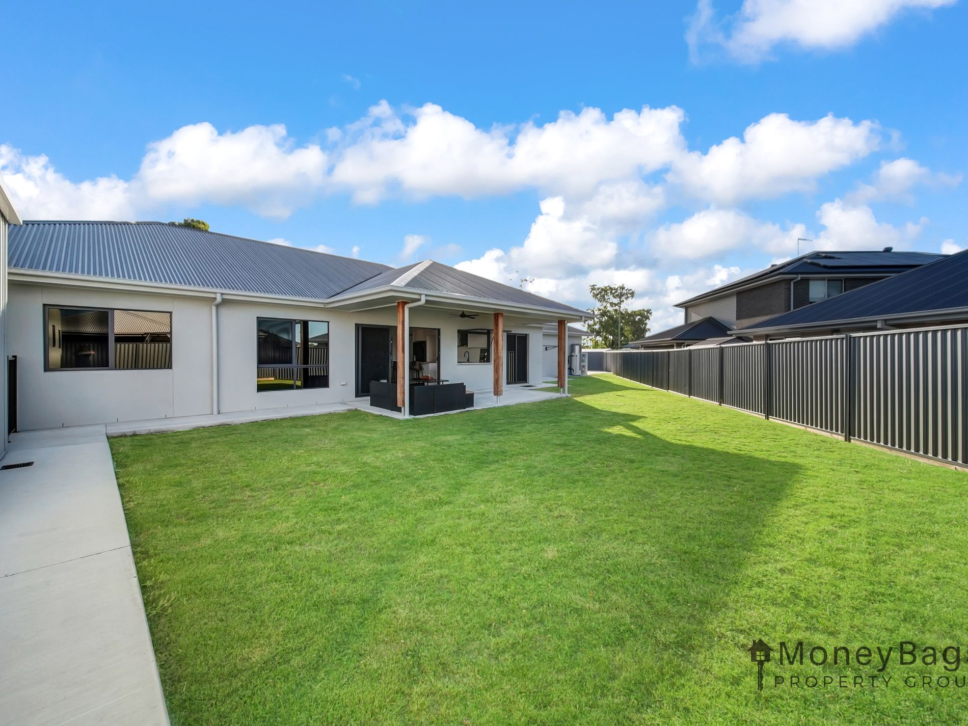 Positioned in one of the most sought-after frontage locations within the prestigious Riverton Estate, 119 Merivale Avenue, Jimboomba presents a stunning near-new home that blends modern elegance with practical family living. Built in 2024 by NuTrend Quality Homes, this impressive 267.5m² residence sits proudly on a generous 834m² fully fenced block, offering space, style and exceptional functionality.