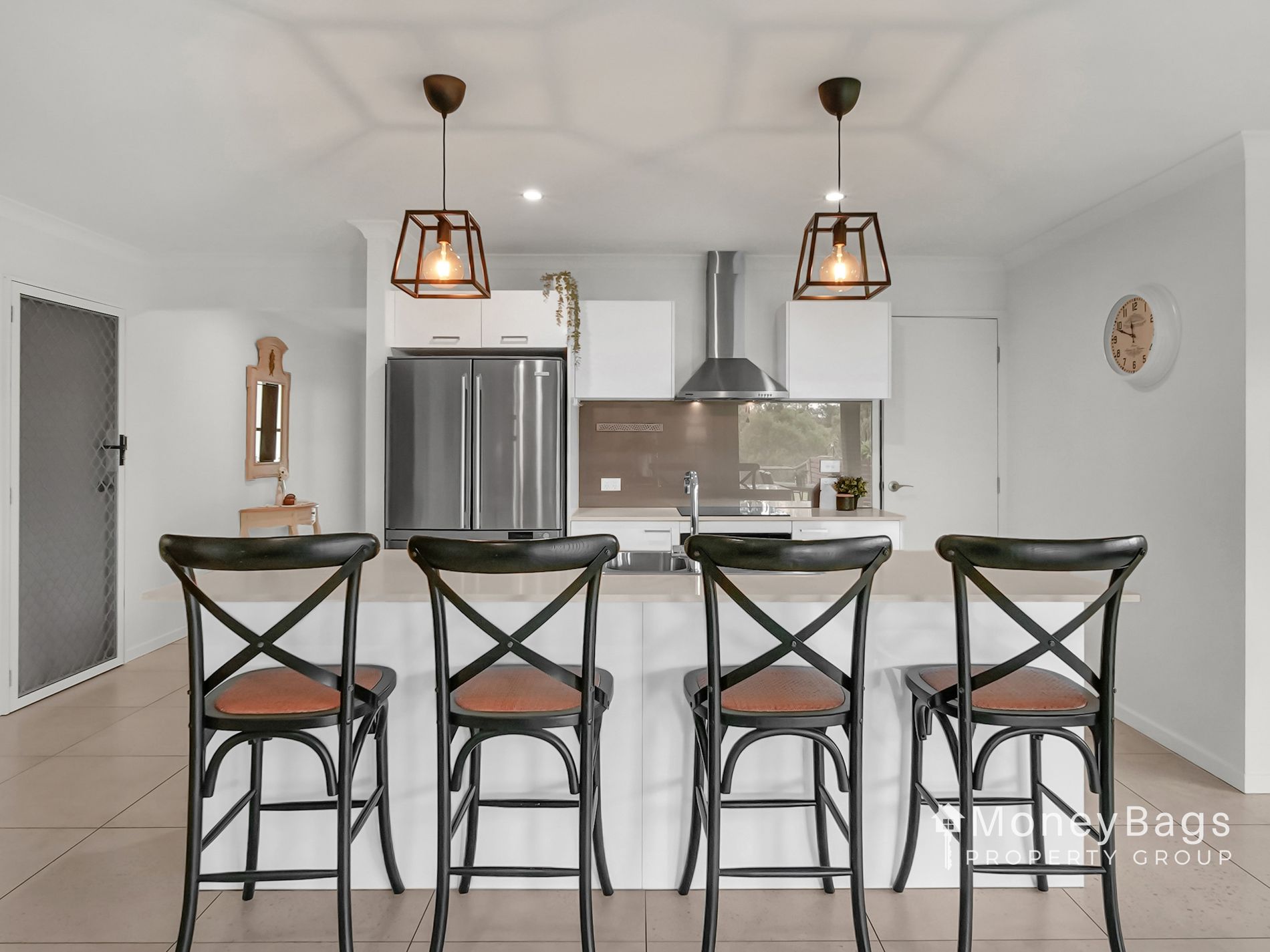 Designed with everyday living and entertaining in mind, the home offers four generously sized bedrooms, complemented by two separate living zones including a dedicated media room and a light-filled open plan living, dining and kitchen area. The heart of the home is the stunning monochrome kitchen, complete with Caesarstone benchtops, ample storage and a large walk-in pantry, making it as practical as it is stylish.